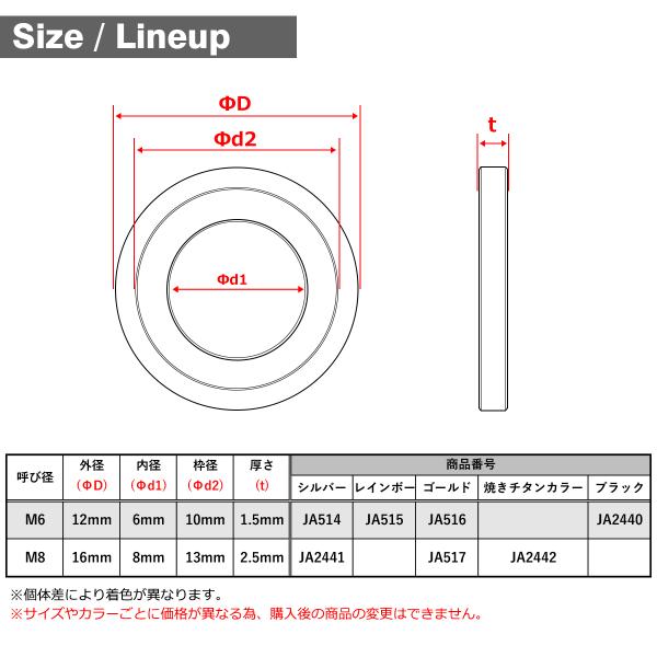 チタンワッシャー M6 外径12mm 枠径10mm ボルト座面枠付き シルバーカラー 1個 JA514