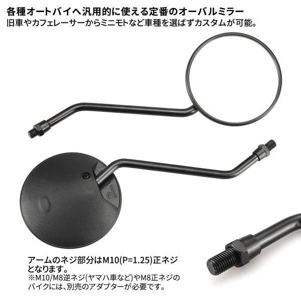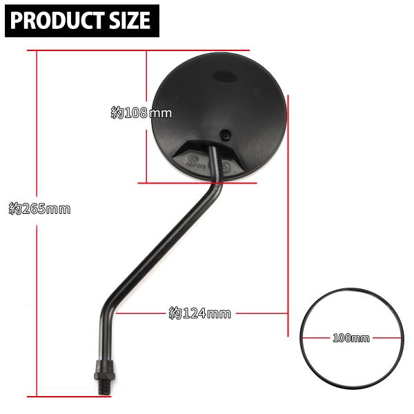 バイク ミラー 左右セット 10mm 正ネジ 丸型 ブラック オフロード スクーター 汎用 S-532-BK