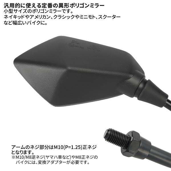 バイク ミラー 左右セット 10mm 正ネジ ポリゴンタイプ オフロード スクーター 汎用