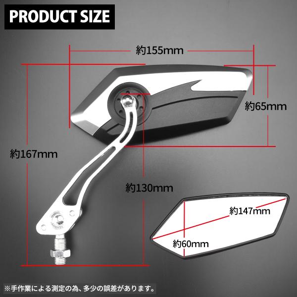 バイク ミラー 左右セット 10mm 正ネジ ポリゴンタイプ オフロード スクーター 汎用
