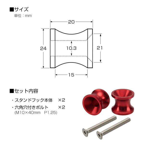 バイク スタンドフック M10 10mm 左右 2個セット レーシングスタンド メンテナンススタンド用 SZ308CHOISE
