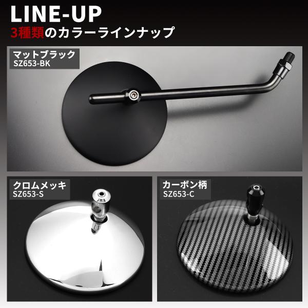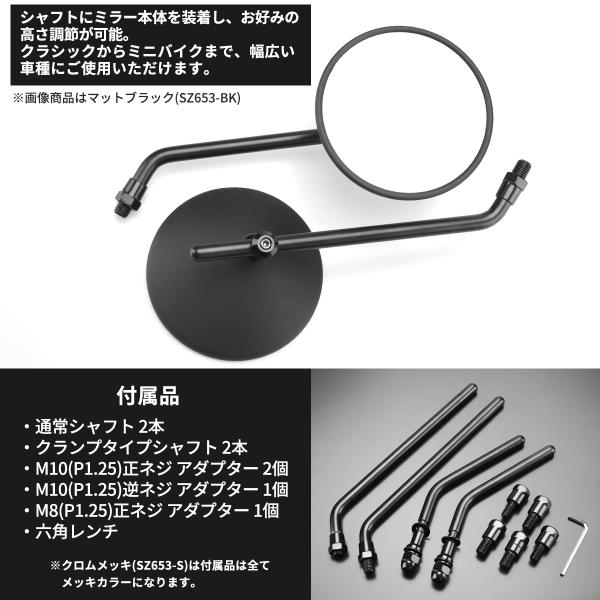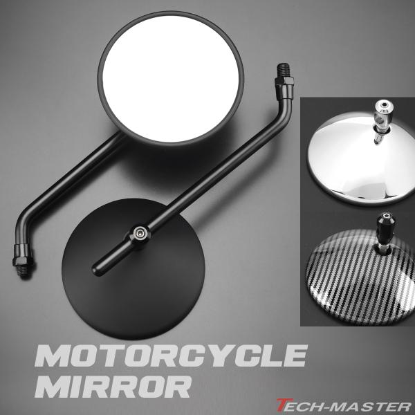 バイク ミラー 丸型タイプ ラウンドミラー 可動式 汎用 左右セット ハーレー用 ステム付き 10mm 8mm アダプター付き メッキ ブラック カーボン SZ653CHOISE