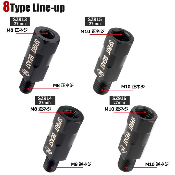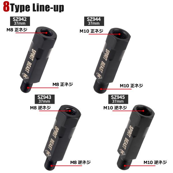バイク ミラー 変換アダプター 37mm延長 M8 M10 P1.25 正ネジ 逆ネジ 変換プラグ ステンレス