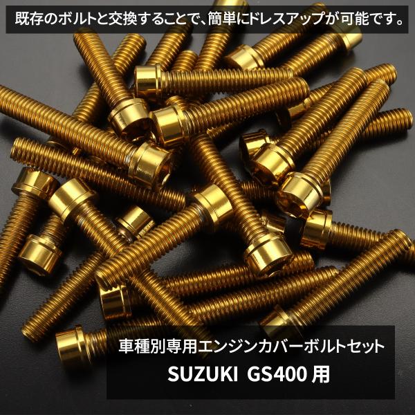GS400 エンジンカバー クランクケース ボルト 32本セット ステンレス製 スズキ車用 ゴールドカラー TB9012