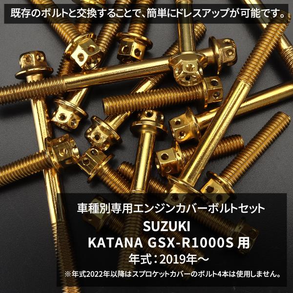 KATANA GSX-S1000S エンジンカバー クランクケース ボルト 30本セット ステンレス製 スズキ車用 ゴールドカラー TB9080