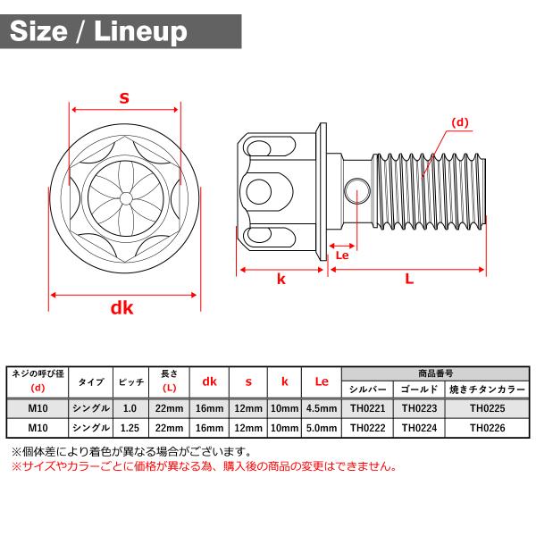 バンジョーボルト ステンレス M10 P1.0 シングル フラワーヘッド 焼きチタンカラー TH0225