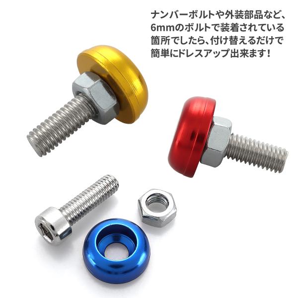 フジツボ カラーワッシャー 6個セット M6ボルト付き アルミ製 8色