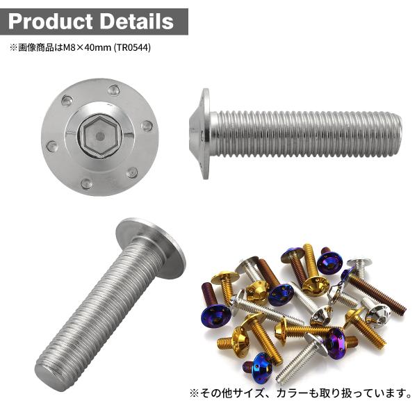 ステンレスボルト M8×40mm P1.25 ボタンボルト ステップホールヘッド シルバーカラー TR0544
