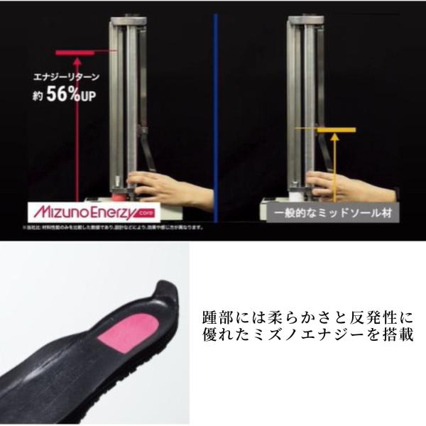 ■踵部にMIZUNO ENERZY搭載:踵部には柔らかさと反発性に優れたミズノエナジーを搭載