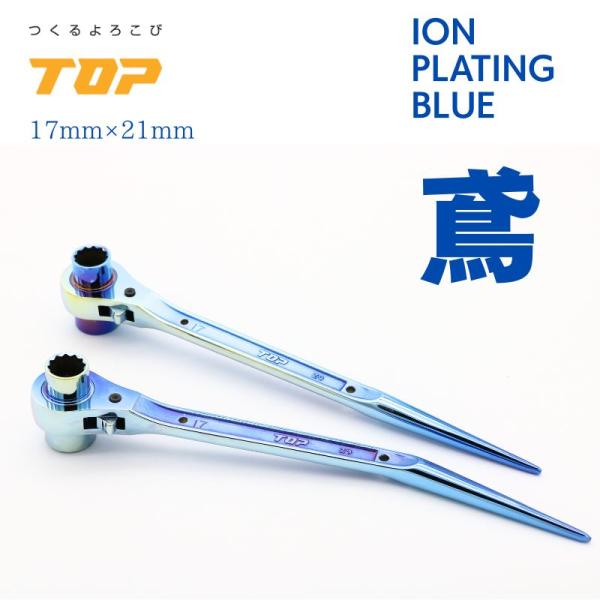 TOP トップ工業 両口ラチェットレンチイオンプレーティング青色 鳶仕様 限定色