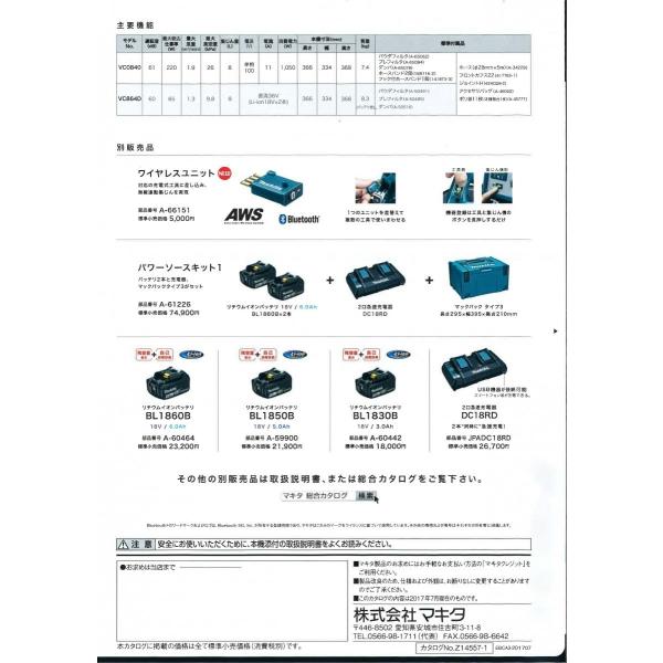 【台数限定】マキタ 集じん機 VC0840 無線連動対応