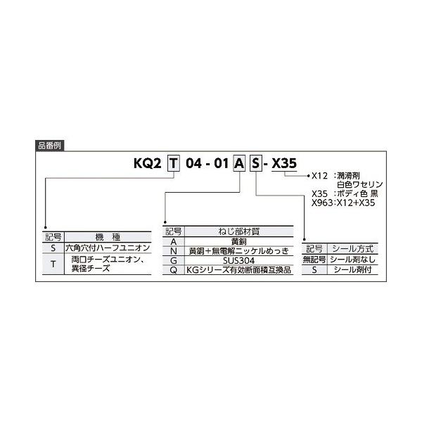 ●ボディ内部の六角穴を六角レンチで締付ける狭いスペース用のハーフユニオン