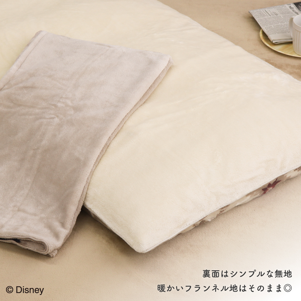 生地は、両面ともふんわりなめらかな手触りのフランネル生地を使用し、あたたかなカバーに仕上げました。(裏面は無地です)