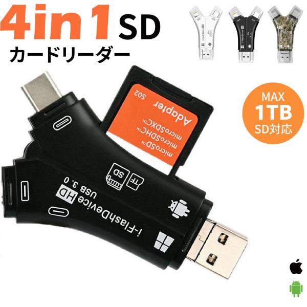 【1TB対応大容量】SDカードリーダー 4in1 iPhone17 対応 1TB USB USBメモリ 外付け高速 128GB 外付け スマホ データ転送 1TB 対応 データバックアップ