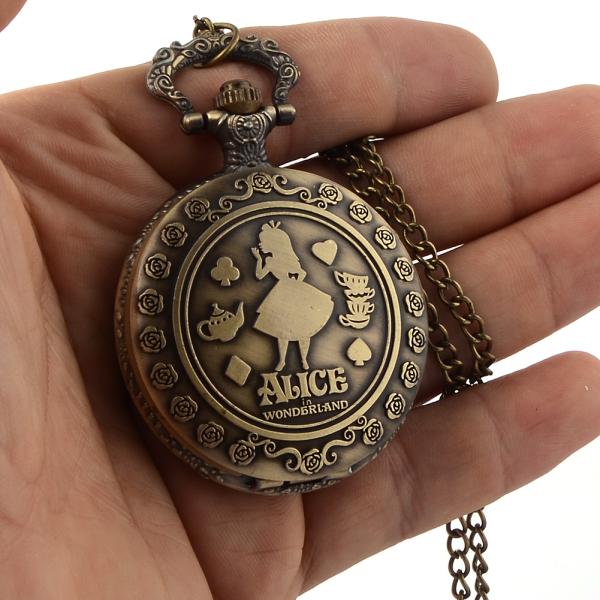 懐中時計 不思議の国のアリス 首掛けチェーン付 - 電池 SR626SW 使用 開閉蓋