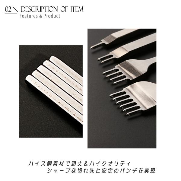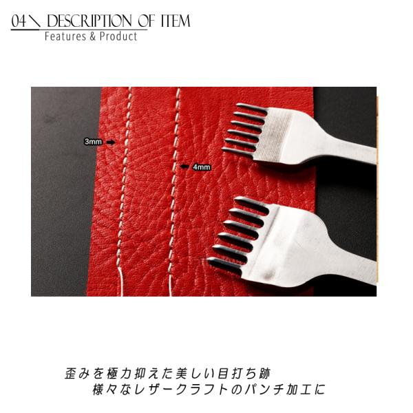 美しい菱目打ちに! レザークラフト パンチツール 5mm 4本組 - 1-2-4-6 ハイス鋼