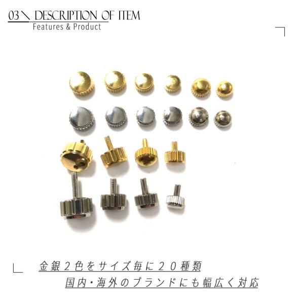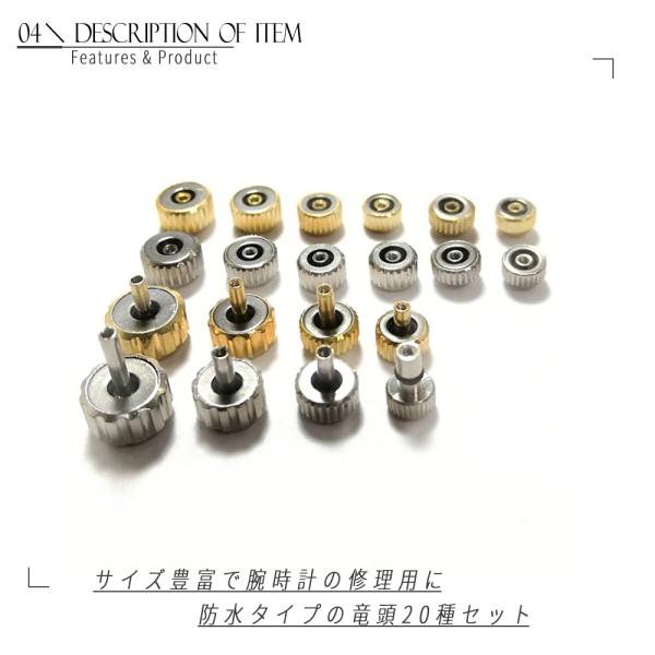 腕時計 リューズセット 防水タイプ 20種類 - 金 銀 ピン形2種 竜頭の修理に