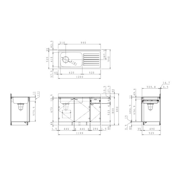 幅1200mm×奥行き550mm×高さ800mm(バックガードまでH890mm)