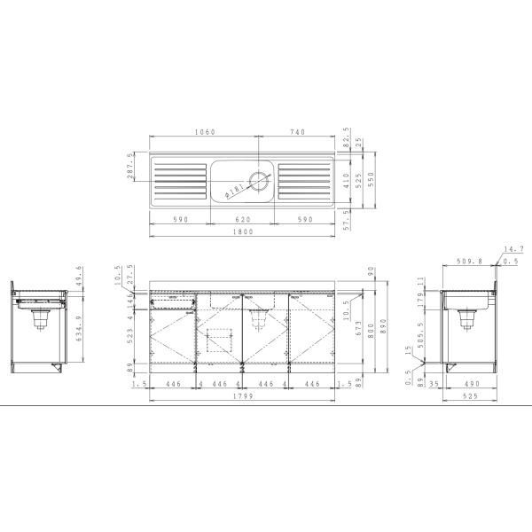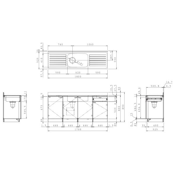 幅1800mm×奥行き550mm×高さ800mm(バックガードまでH890mm)