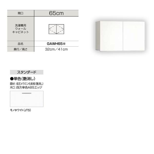 【メーカー直送】送料無料 クリナップ W650 洗濯機用ウォールキャビネット GAWH65 スタンダード モノホワイトJTS