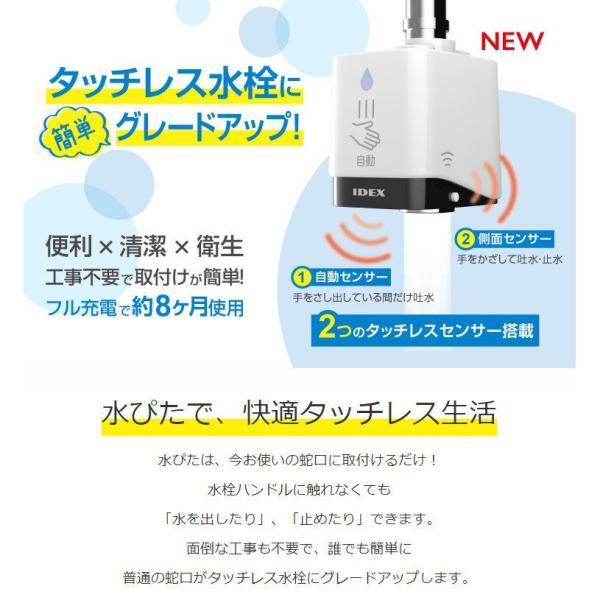 蛇口直結型自動水栓 水ぴた 水ピタ みずぴた MP-320WS キッチン タッチレス 非接触 工事不要 センサー ウイルス 細菌 対策 感染 予防 衛生 清潔 自動 小型