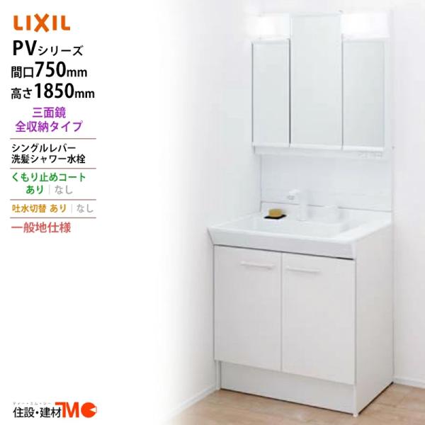 LIXIL ◆送料無料・メーカー直送◆間口750x1850高タイプ三面鏡 LED照明 化粧台・洗面台 一般地仕様 吐水切替あり