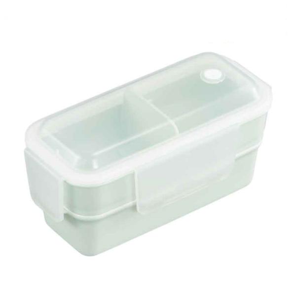 OSK Pale color ランチボックス 2段 600ml グリーン 日本製 盛付がつぶれない 4点ロック 抗菌 仕切付 レンジ対応 食洗機対応 シンプル お弁当箱 HPCW-600D