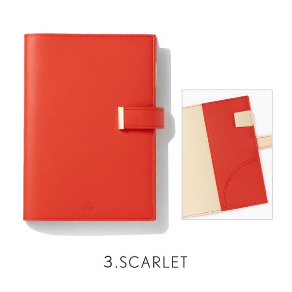 さりげなく光る金具付きのフラップが魅力のトラッドカバー。手帳を開くたび見えるバイカラーも気分が上がるポイントに。個性の光る配色で、あなたの1年を彩ります。