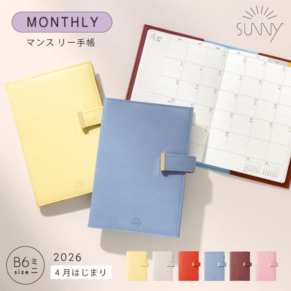 手帳 スケジュール帳 マンスリー SUNNY サニー スタンダードカバー《2026年/1月始/B6ミニサイズ》2026 1月始まり ビジネス手帳 lsm