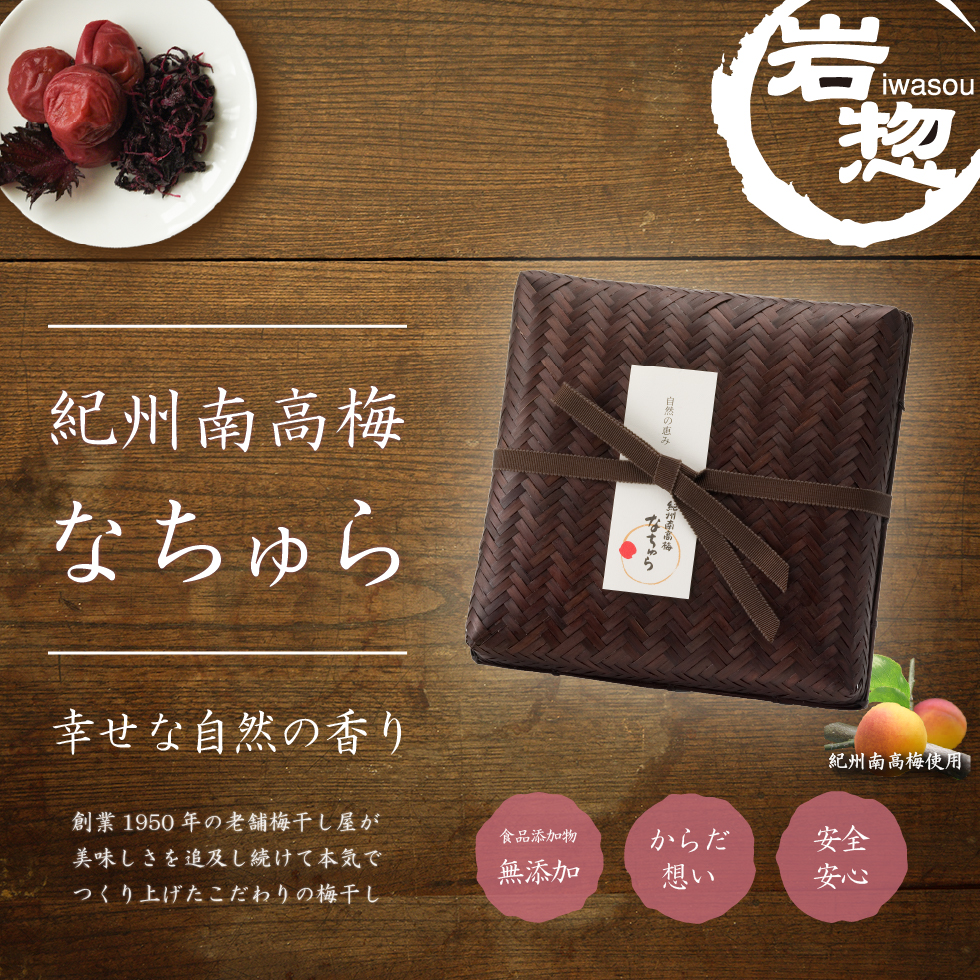 ギフト 梅干し 無添加 減塩 しそ 南高梅 なちゅら 塩分9% 竹籠入り 500g 赤紫蘇 特選 紀州 しそ梅干し しそ漬け 岩惣 プレゼント 2026