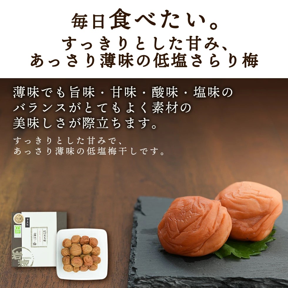 すっきりとした甘味のあっさりうす味梅干し。