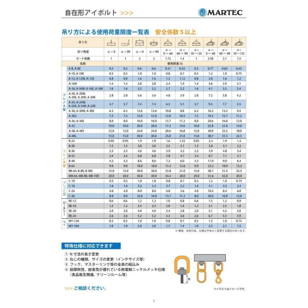 ねじ径M8〜M100対応、使用荷重0.3t〜20t対応、全方向安全係数5以上