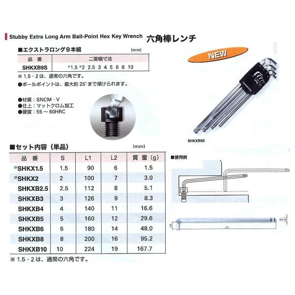 SHKXB8 首下ショートエキストラロングボールポイント六角棒