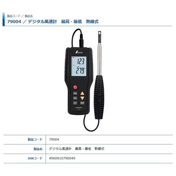 シンワ 79004 デジタル風速計 最高・最低 熱線式 。