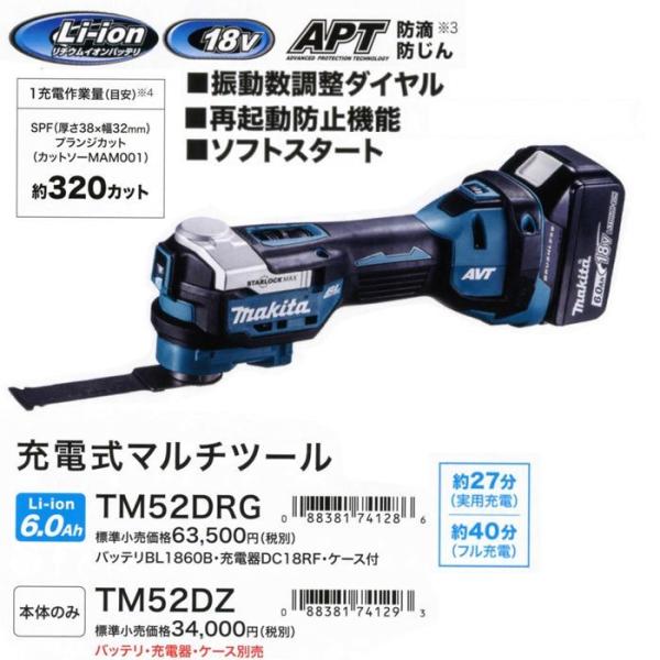 マキタ 18V 充電式マルチツール TM52DZ STARLOCK-MAX対応 本体のみ(バッテリ・充電器・ケース別売)