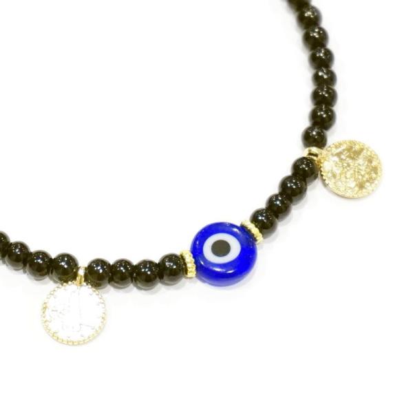 【メール便OK】トルコ製 ナザールボンジュウ トルコのお守り ビーズブレスレット N-B14158BK ブラック