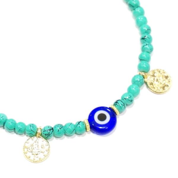 【メール便OK】トルコ製 ナザールボンジュウ トルコのお守り ビーズブレスレット N-B14158TQ ターコイズ