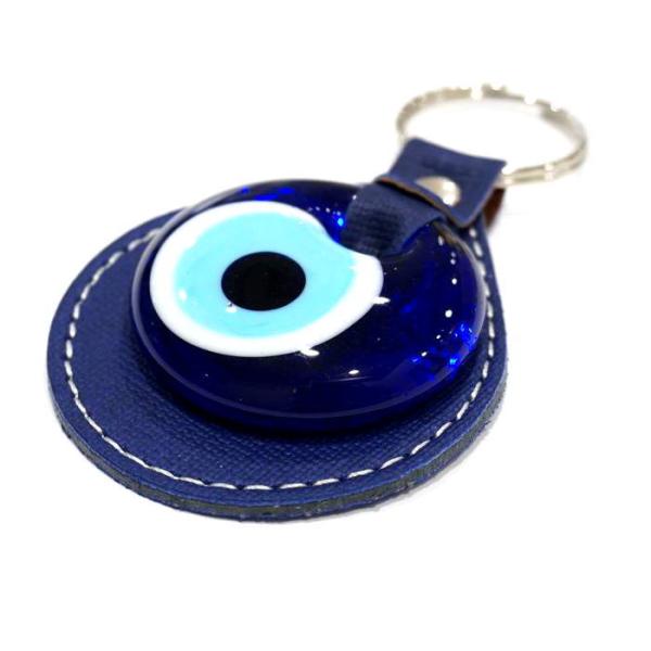 【メール便OK】トルコ製 ナザールボンジュウキーホルダー ラウンド/ネイビー N-K14412NV