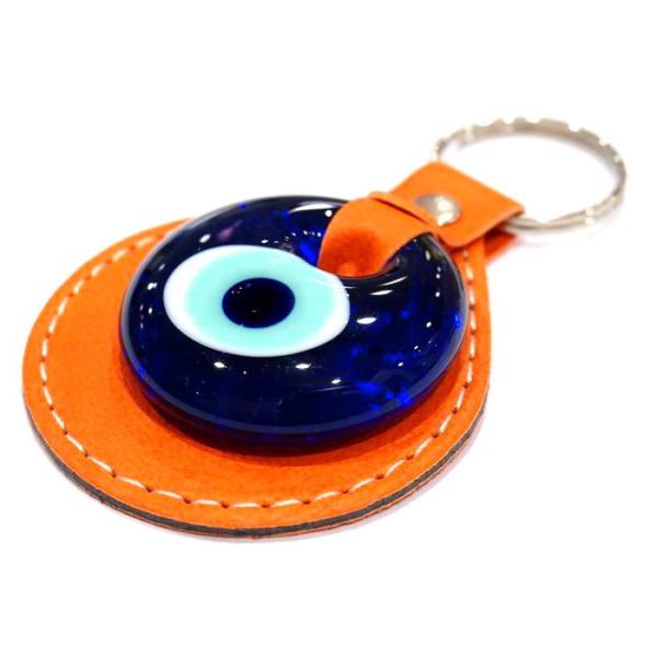 【メール便OK】トルコ製 ナザールボンジュウキーホルダー ラウンド/オレンジ N-K14412OR