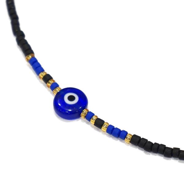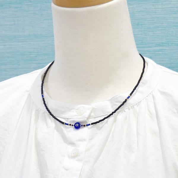 【メール便OK】トルコ製 ナザールボンジュウ トルコのお守り ビーズネックレス/ブラック N-P14481BK