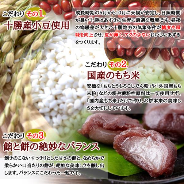 北海道十勝産の良質な小豆で作った餡で柔らかいお餅を包みました。