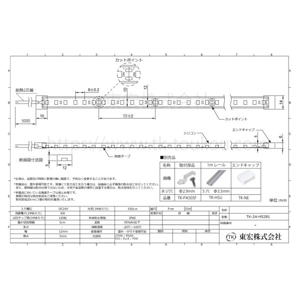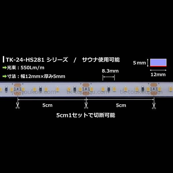 サウナ室用 LEDテープライト TK-24-HS281-27K 電球色(2700K) 単色 2m DC24V 防水 水没可 耐熱 耐高温 サウナ照明 サウナライト サウナランプ 屋外照明 温泉照明
