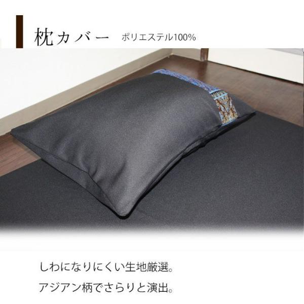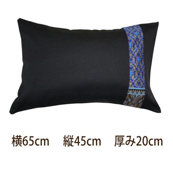 【ブラック×ブルー】【枕 まくら】高品質生地 アジアン柄の カバー つき パイプまくら セット65×45cm