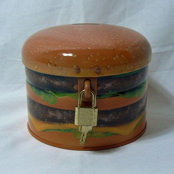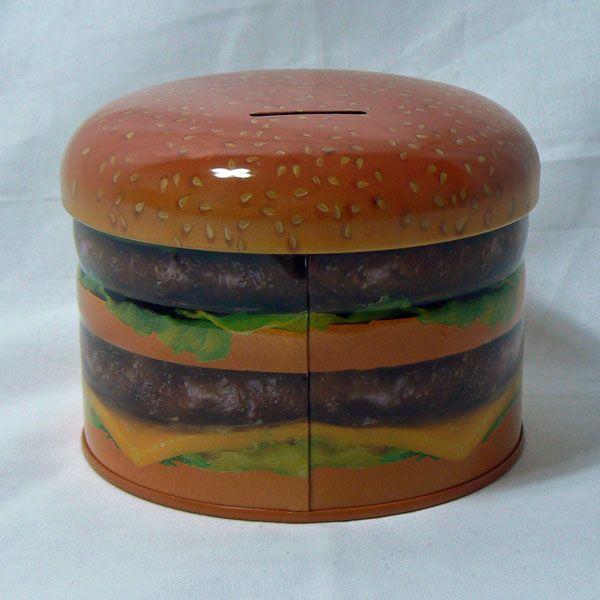 ハンバーガー型のブリキのコインバンクです。