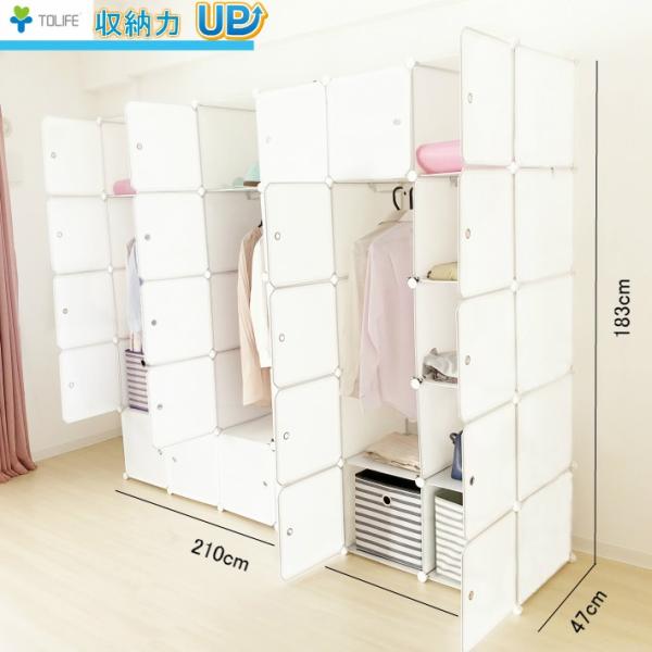 収納家具 ワードロープ クローゼット 衣装ケース 収納ボックス 組立式 DIY 30扉 服掛け3つ 棚 押入れ収納 ラック ホワイト