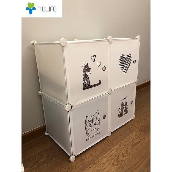 収納 衣装ケース 収納ボックス 組み立て式 DIY 2段2列4扉収納ボックス キャラクター入り収納家具 押入れ収納 ブラック/ホワイト