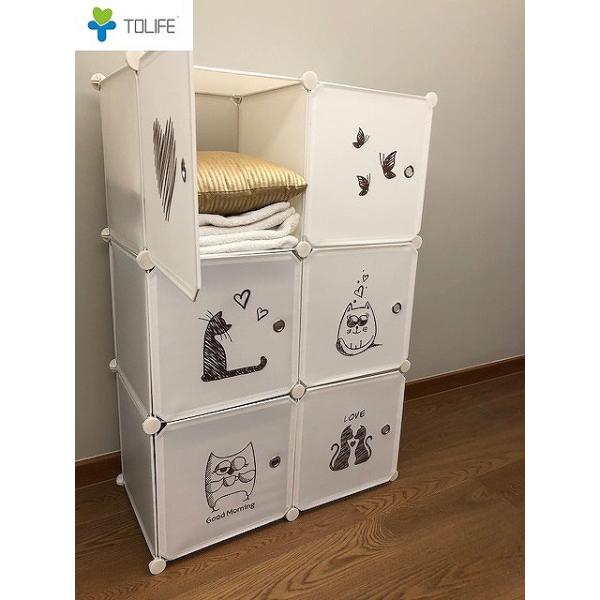 収納 衣装ケース 収納ボックス クローゼット 組み立て式 DIY 3段2列6扉 キャラクター入り収納家具 押入れ収納 ブラック/ホワイト