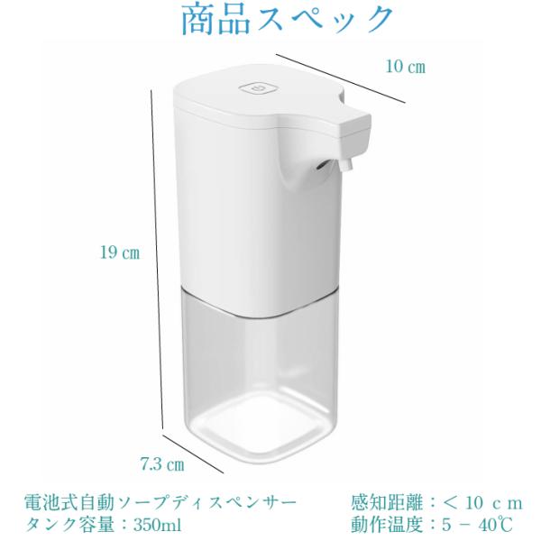 自動アルコールディスペンサー オート定量で噴射 350ml容量 ホワイト 除菌消毒 おしゃれ 家庭 オフィス 学校 病院 ホテル 置くだけ簡単設置 電池式