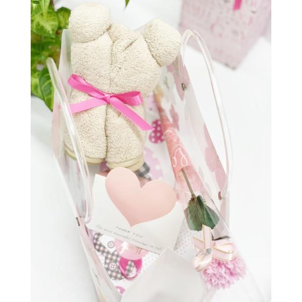 母の日 誕生日プレゼント 花ギフト オートディスペンサー&クマタオル メッセージカード付 カーネーション花付 桜プリントPP手提げ袋付