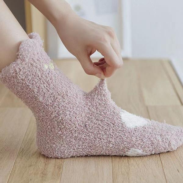 もこもこ ふわふわ 暖かいルームソックス 5カラー ハート ねこ ネコ柄がかわいい 靴下 冬 あったか 暖かい 可愛い 冷え取り靴下 厚手